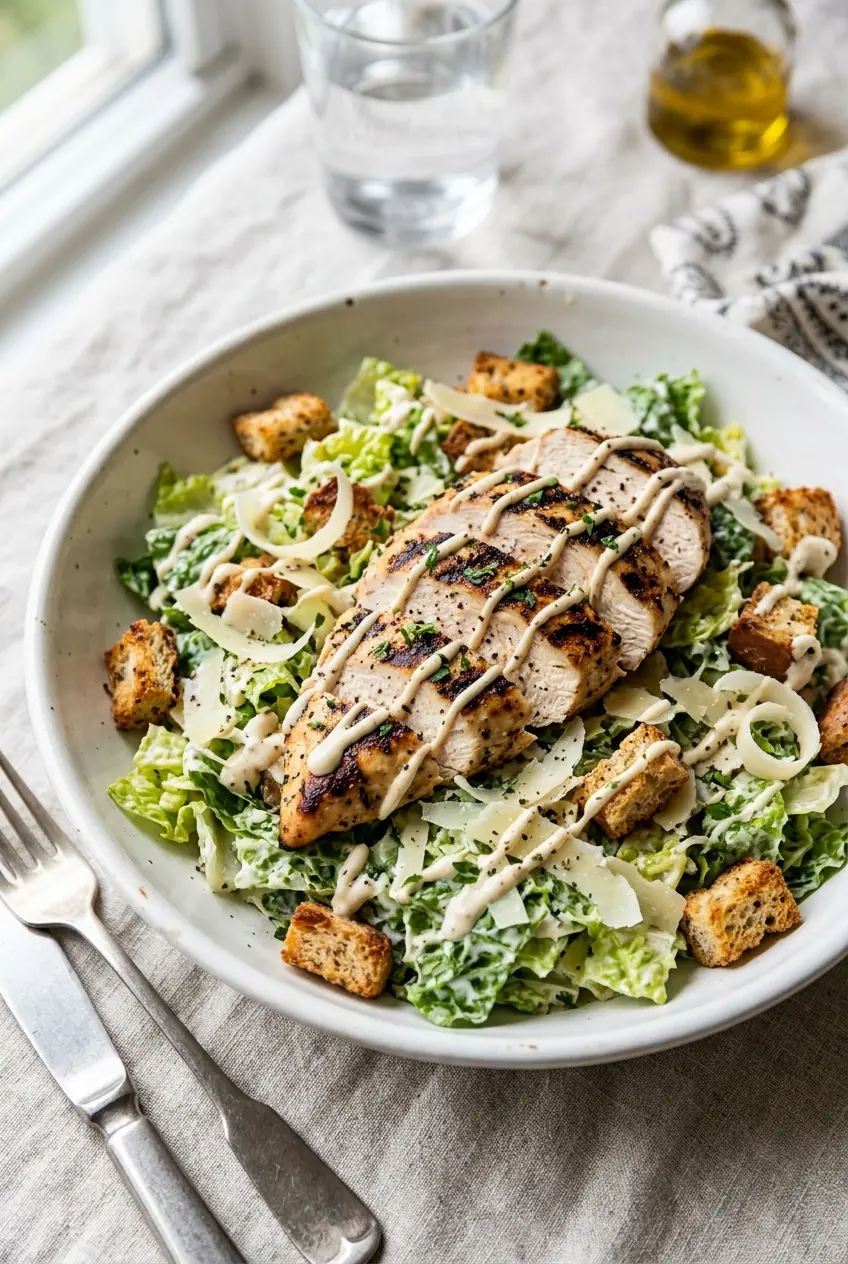 The dressing was thick enough to coat the romaine without puddling at the bottom, and the grilled chicken stayed juicy after the rest. My husband said it tasted like a restaurant Caesar, only better because the croutons stayed crunchy.
